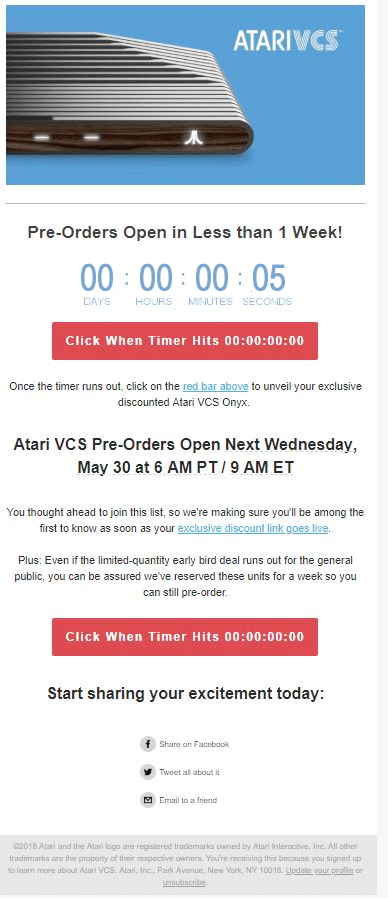 While crowdfunding pre-ordering for the new Atari VCS will begin next week, consoles won't begin shipping until next spring at the earliest. If you put $200 into a CD at 2.5% interest, one year from now you'll have $205 and no VCS. If you give that $200 to Atari SA on May 30th, one year from now you'll have $0 and no VCS.
